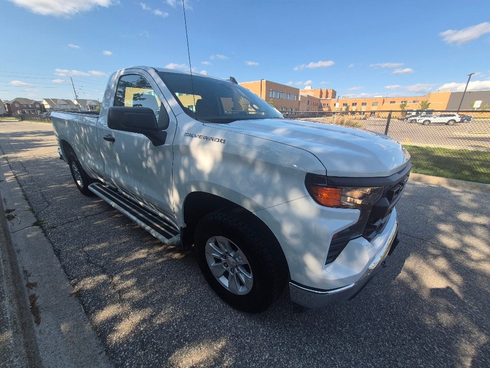 2024 Chevrolet Silverado 1500 work truck 2WD regular cab long bed 5.3L 8 cylnder 11327 KM all Possible Options, including lane assisit,auto on and off engine,cruise control, bluetooth,back up camera AC, CD, PW, PL, AM/FM radio, The prices is $34999 certified plus applicable taxes, plus licensing fees.